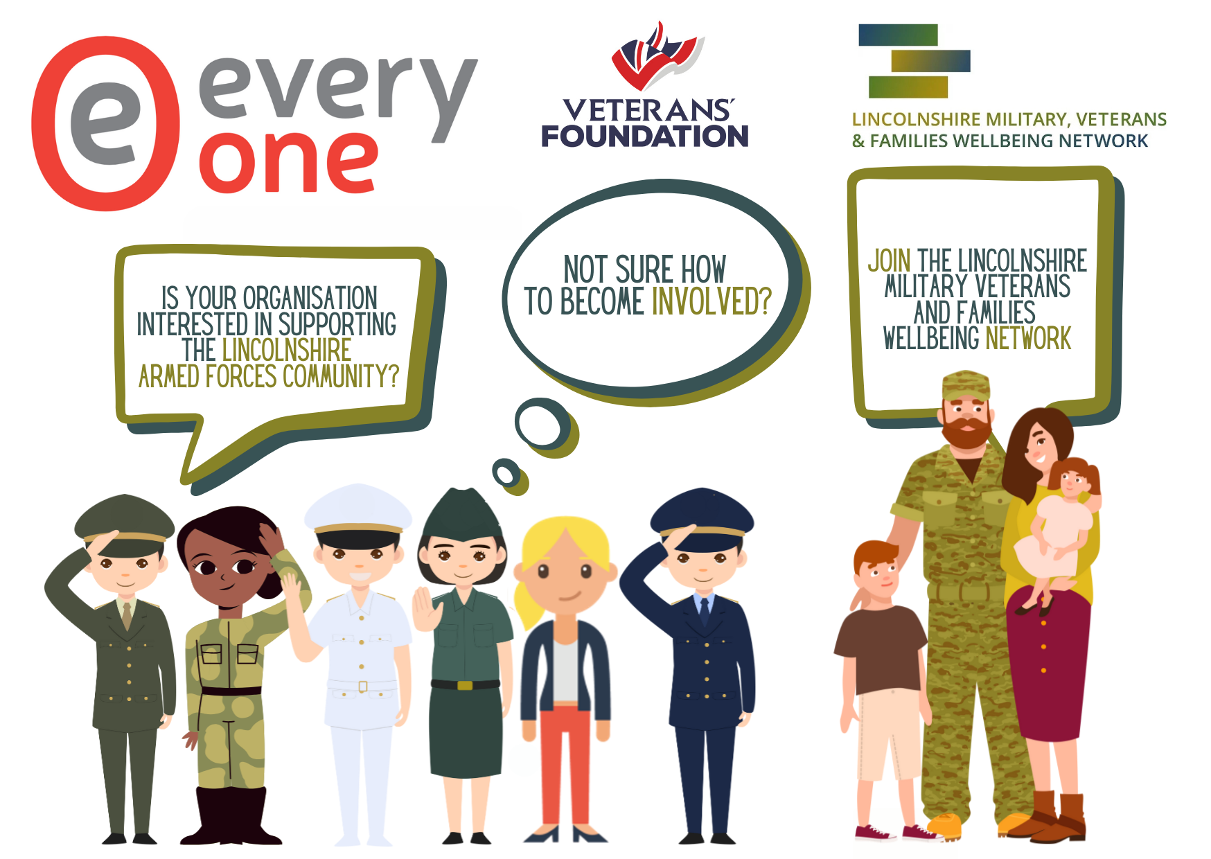 Every-One facilitates the Lincolnshire Military Veterans and Families Wellbeing Network; a network of over 100 national, regional, county and local organisations who are like-minded in their support to the Lincolnshire armed forces community.